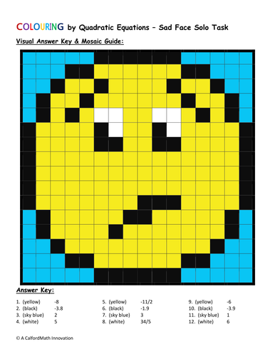 Solving Quadratic Equations Solo Colouring Worksheet Teaching Resources